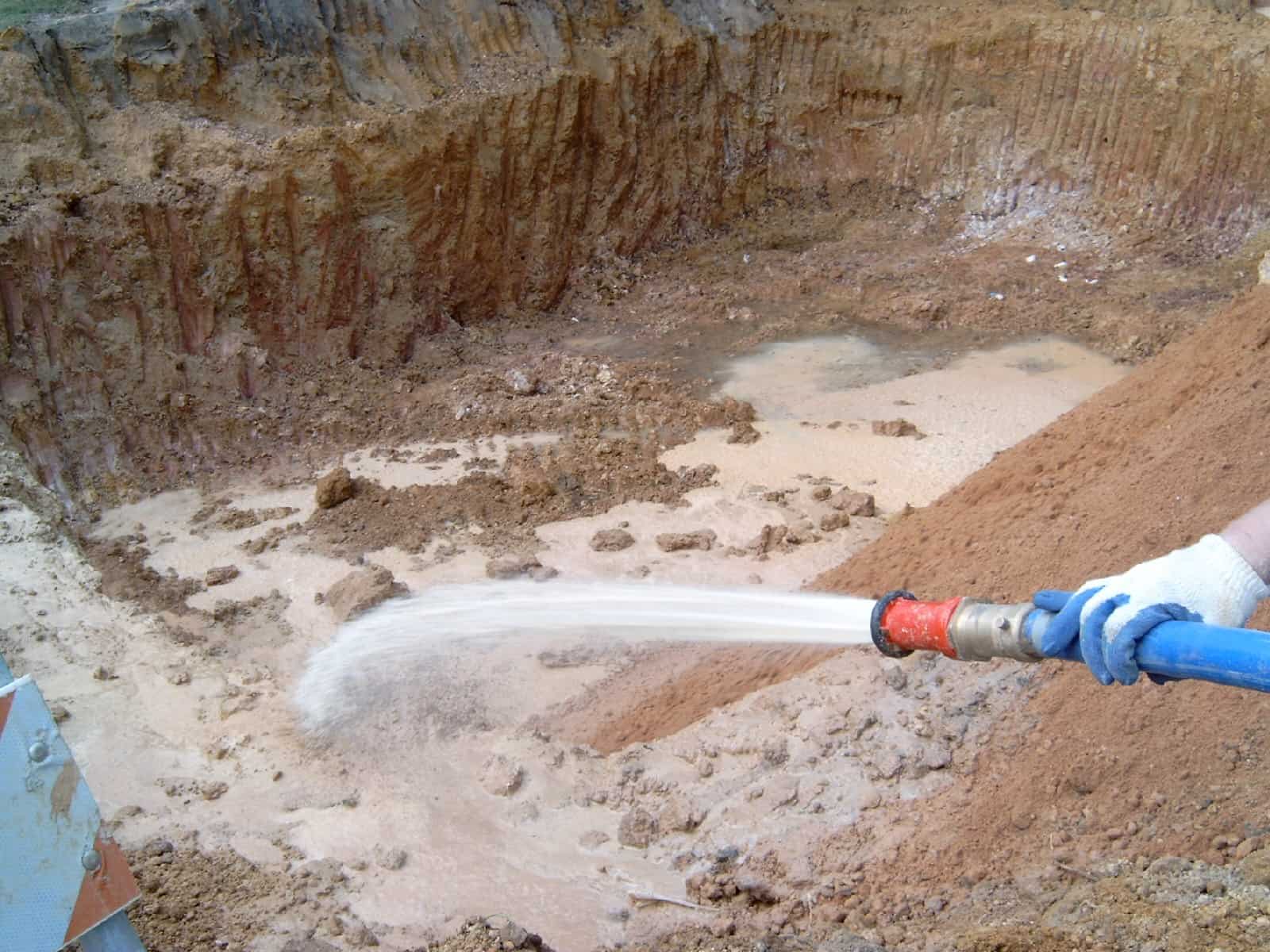 This photo depicts Pit-Stop™ being applied to an excavation during backfill activities. The generation of lather indicates that the reagent is reacting with contaminants in the soil and water. When applied prior to backfilling, the agitation of the fill aids in mixing the reagent with contaminants in the soil and water. When applied prior to backfilling, the agitation of the fill aids in mixing the reagent with the contaminants while preventing the fill material from becoming contaminated.